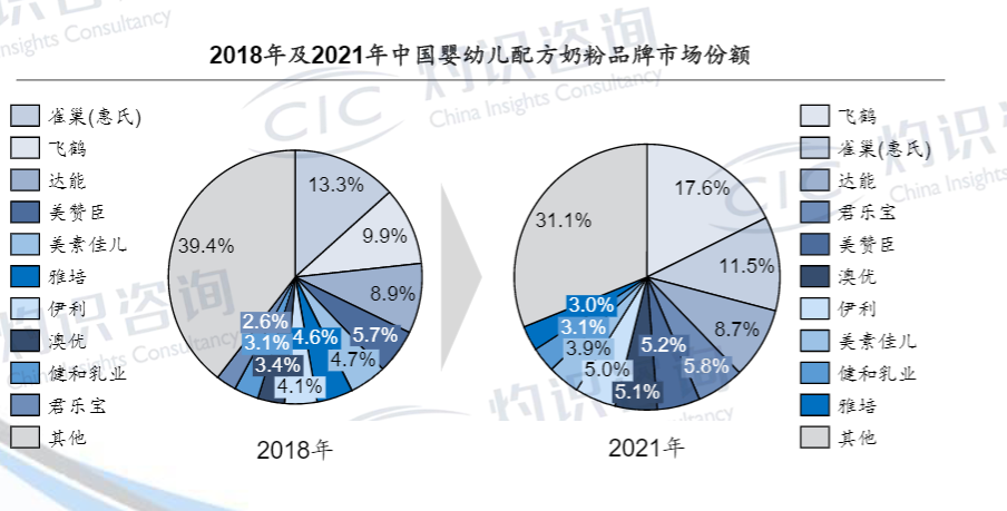 另一方面,自2016年国内婴配奶粉从备案制改为注册制后,已有近85%的中小品牌因技术、资金等实力不足而退出市场,这也意味着国内的中低端市场基本已被瓜分完毕。