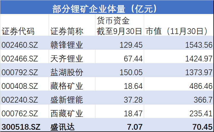 钛媒体APP对比部分锂矿企业发现,不管是体量还是资金实力,盛讯达都难以和锂电行业内的企业匹敌。