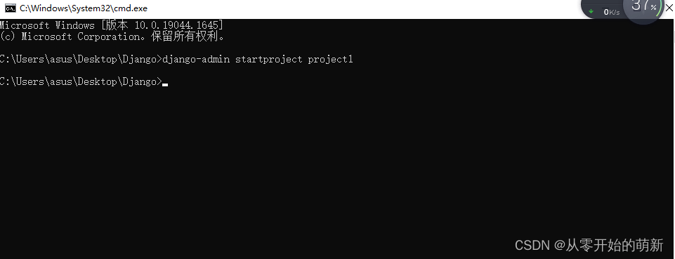 会出现一个小黑窗口 , 在小黑窗口 输入命令:django-admin startproject [项目名称]