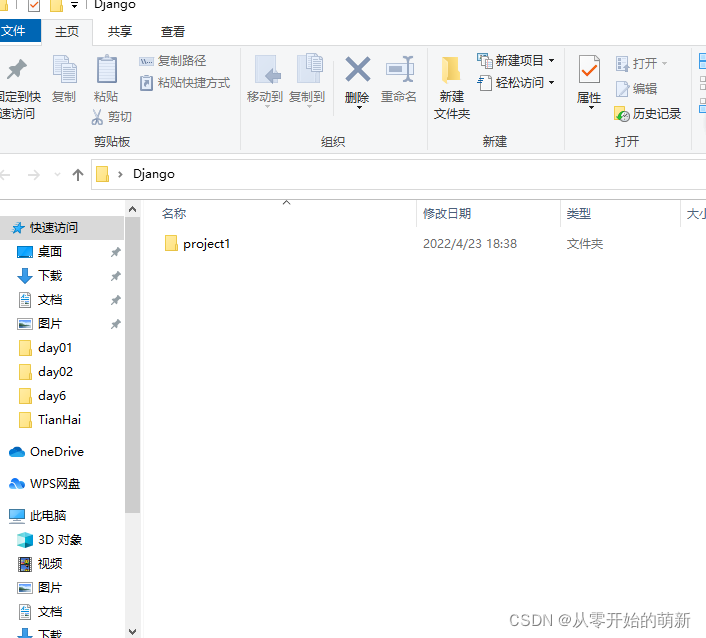 然后打开我们新建的Django文件夹 会发现有 一个名字 project1 的文件夹 我们可以选中鼠标拉到pycharm