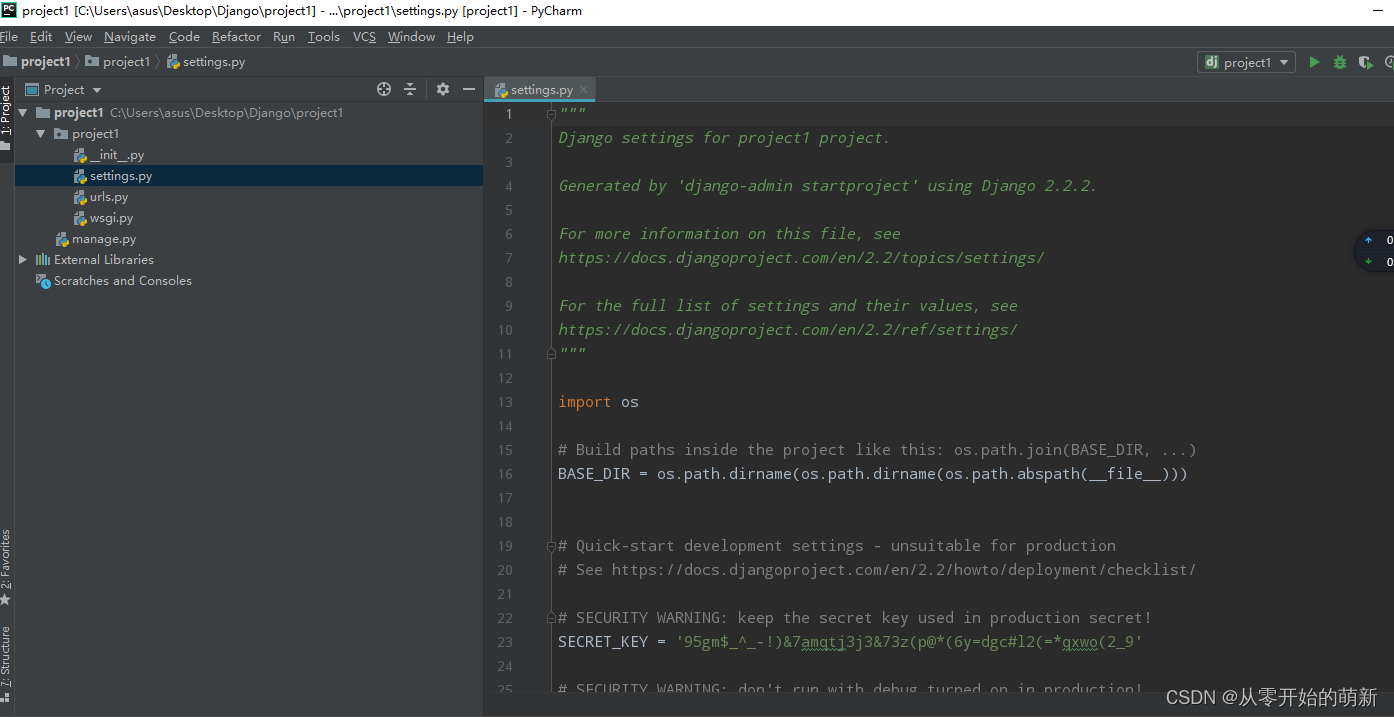 进入pycharm以后我们可以先了解一下 settings.py 里面的文件