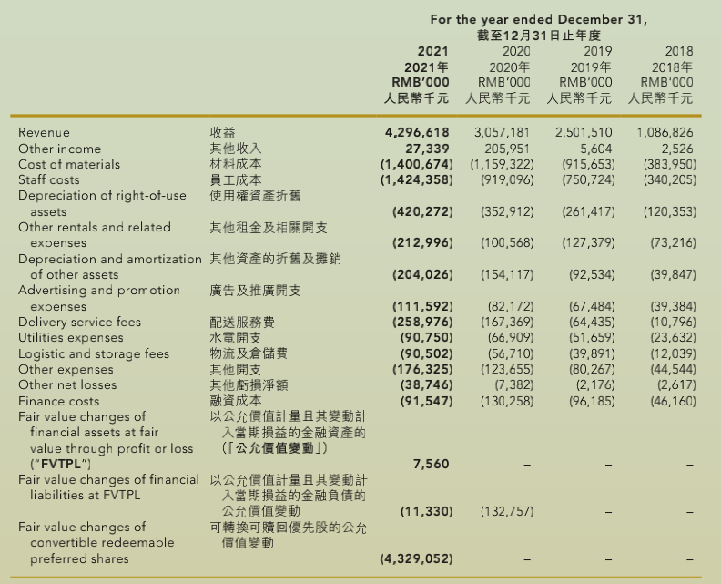 换句话说,2021年奈雪之所以还亏钱,除了疫情以及逆势扩张等短期因素之外,更多的是其公司内部管理支出所导致的,考虑到其2021年完成上市,当年的管理分红、前期的融资兑付、以及相关的各项上市开支,未来这部分内部管理支出的占比必然将下降。
