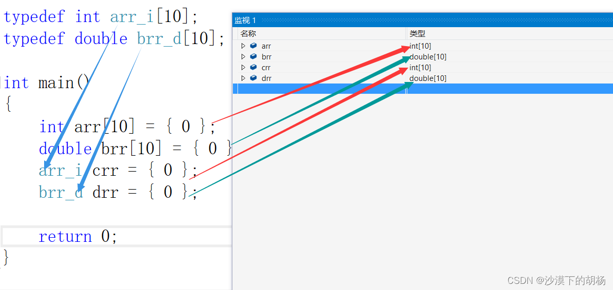 所以我们如果想把数组的类型也像其他一样,那么我们使用typedef进行类型重名。