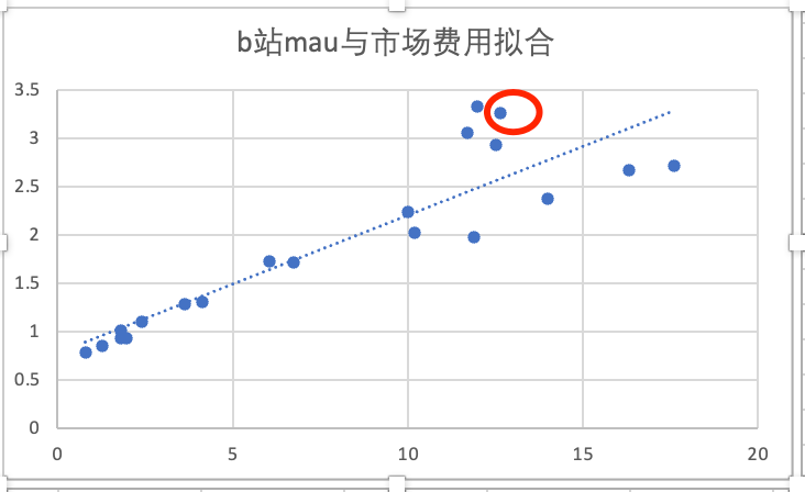 市场费用终极目标为获客,使用效率越高,获客成本越低。在上图中的2022年Q4,其点状分布位于拟合线上方,意味着以较低的成本拿到了此MAU数据,这是企业近期盈利性好转的重要原因(也是该行业最有弹性的费用)。