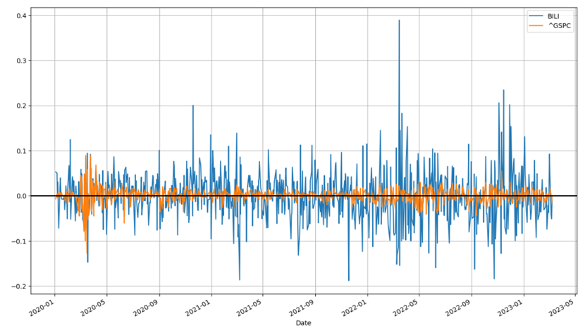 在预期和现实错配的切换中,市场会表现出非常大的分歧,笃信“中国版YouTube”的仍在坚持,与此对应对企业质疑的比重也在放大,这些又会使得企业在此周期内表现出非常大的波动性,于是我们整理标普500和B站的每日波动情况这一高频数据,见下图: