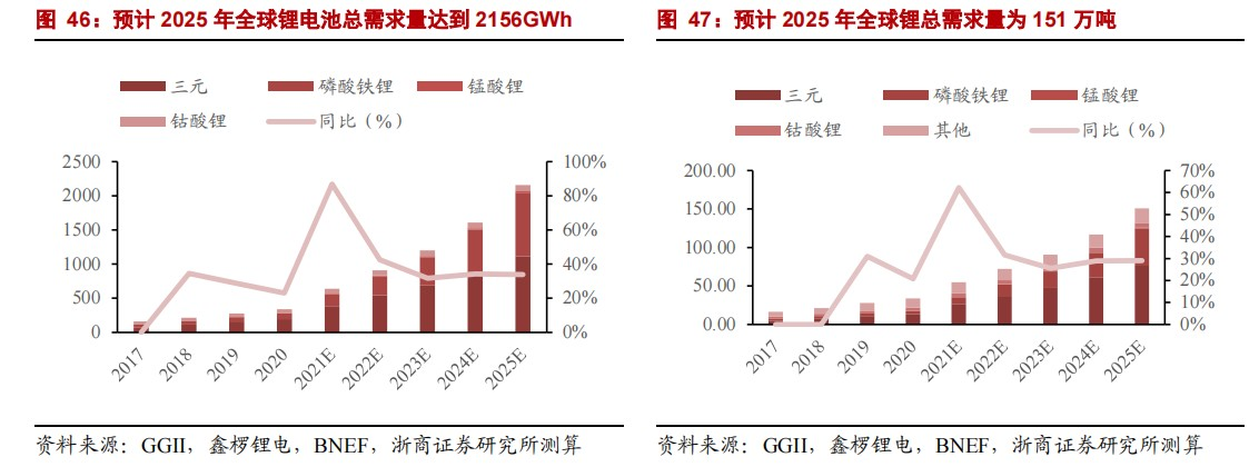 浙商证券也指出,当前供给端海内外产能释放有限,锂资源供给短期增量有限,预计到 2025年,全球锂资源供给约为142万吨。而需求端受新能源汽车、风电、光伏、5G 基站等新兴行业的兴起以及智能手机、计算机等电子消费领域的稳定放量,带动锂化合物需求增长,预计到 2025 年全球锂资源需求为151万吨。供给缺口达到9 万吨,未来锂资源仍处于供不应求的格局。