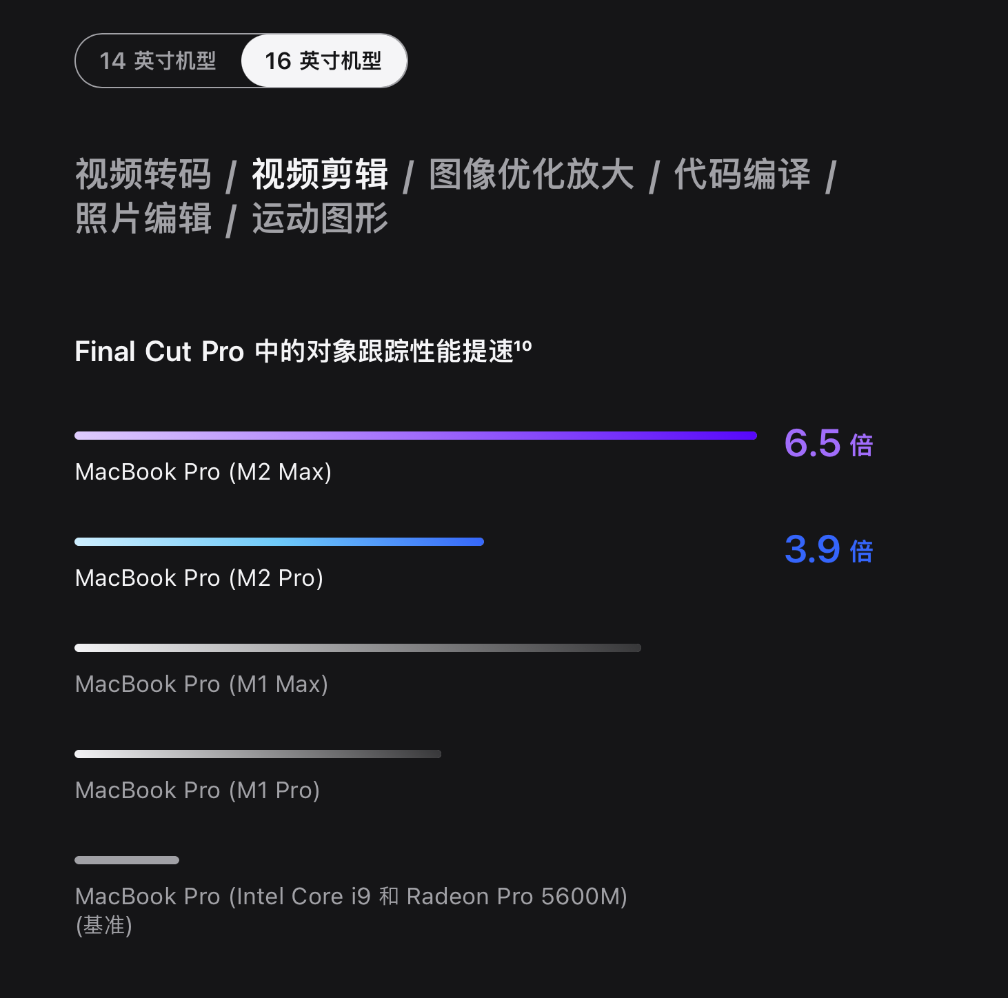 当然这些都是苹果官方自己给出的宣传,实际上仔细观察后就能发现,M2 Max所带来的提升其实远没有当初M1 Max那样明显的。其原因主要分为两部分,第一M1推出时芯片从英特尔的X86架构换到了M1的Arm架构,架构的变化导致芯片的侧重点也发生了变化;得益于Arm架构芯片自身的优势以及苹果在芯片中针对不同任务做了硬件级的优化,所以M1系列的每一款芯片都能让人眼前一亮,而M2系列芯片则是在M1珠玉在前的前提下作出性能提升,必然不会有当初发布M1时那样惊艳。