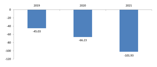 随着VR等领域的持续高额投入,公司现实实验室的亏损面逐渐扩大,2021年全年现实实验室部门(Reality Labs)总收入约23亿美元,亏损竟高达101.9亿美元——相当于1个B站。根据最新财报数据,公司现金流大幅下滑至44.5亿美元,虽然不足以动摇Meta的根基,但足以让不少投资者警惕。