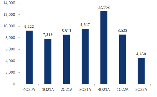 图2:2022年Meta自由现金流大幅下滑(单位:百万美元);资料来源:公司公告,安捷证券