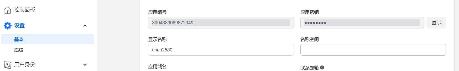 2.3其次就是 如下图的 应用编号,和应用密钥一会需要