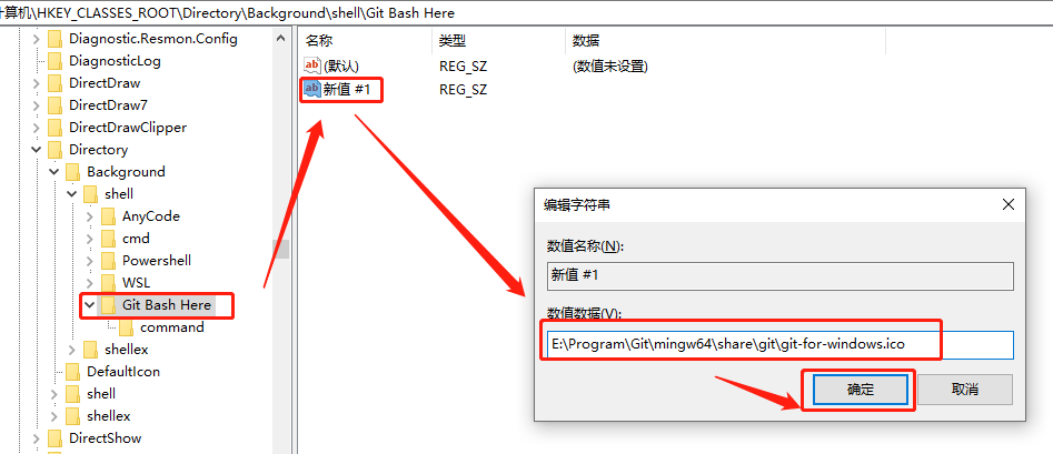双击新建文件“新值#1” ,在数值数据中输入上面查到的ico路径,点击确定按钮