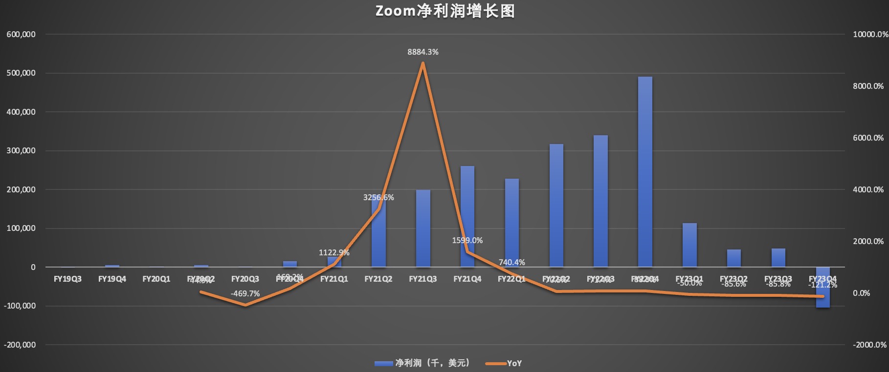 营收呈现断崖式下滑的同时,Zoom的净利润也在暴跌。