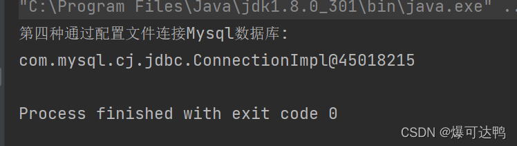 System.out.println("第四种通过配置文件连接Mysql数据库:\n"+connection);