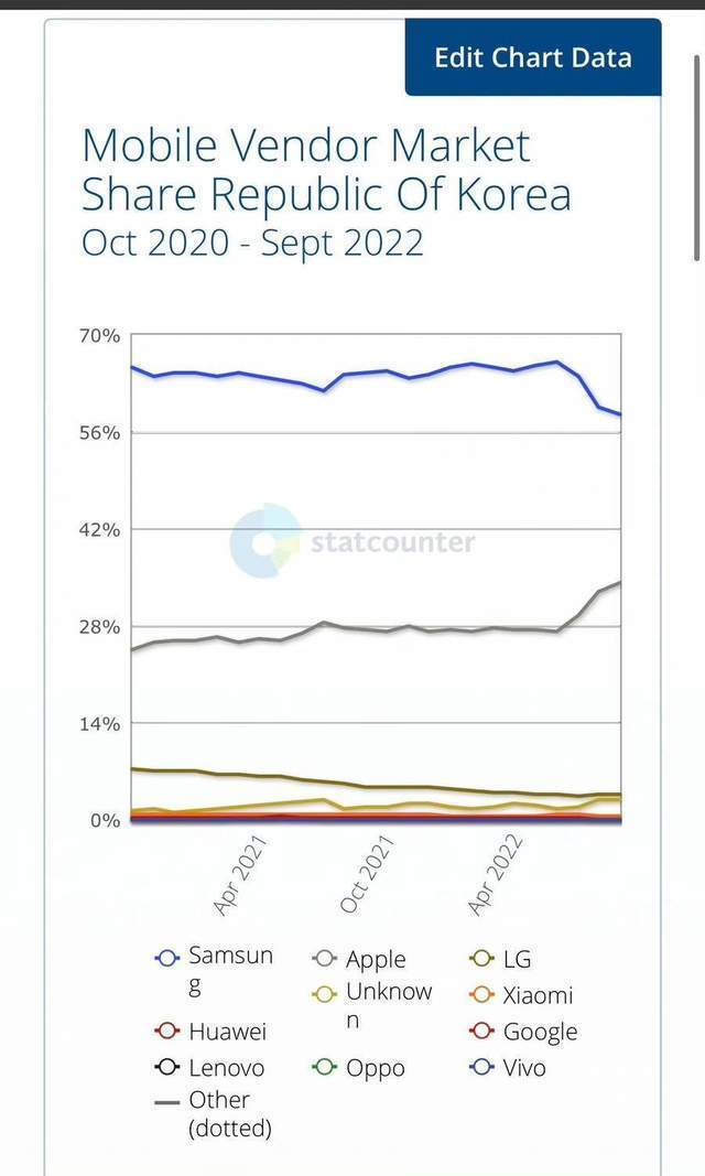 这意味着,三星有不可小觑的综合实力,但是三星的竞争力并非不可挑战,尤其是我们看到,今年来,在苹果iPhone的强势进攻下,三星手机本土大本营开始失守,在韩国市场份额首次跌破60%。