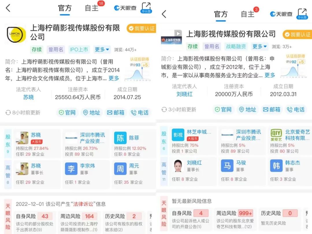 刘宇宁的“非鹅”待播剧,大多也和腾讯系资本有关系。比如,刘宇宁搭刘诗诗的《一念关山》虽然是爱奇艺剧集,但制作方是柠萌影业,而柠萌影业是著名的腾讯系公司。深圳市腾讯产业投资基金有限公司是其第二大股东,占比高达26%,与老板苏晓的持股比例相当。