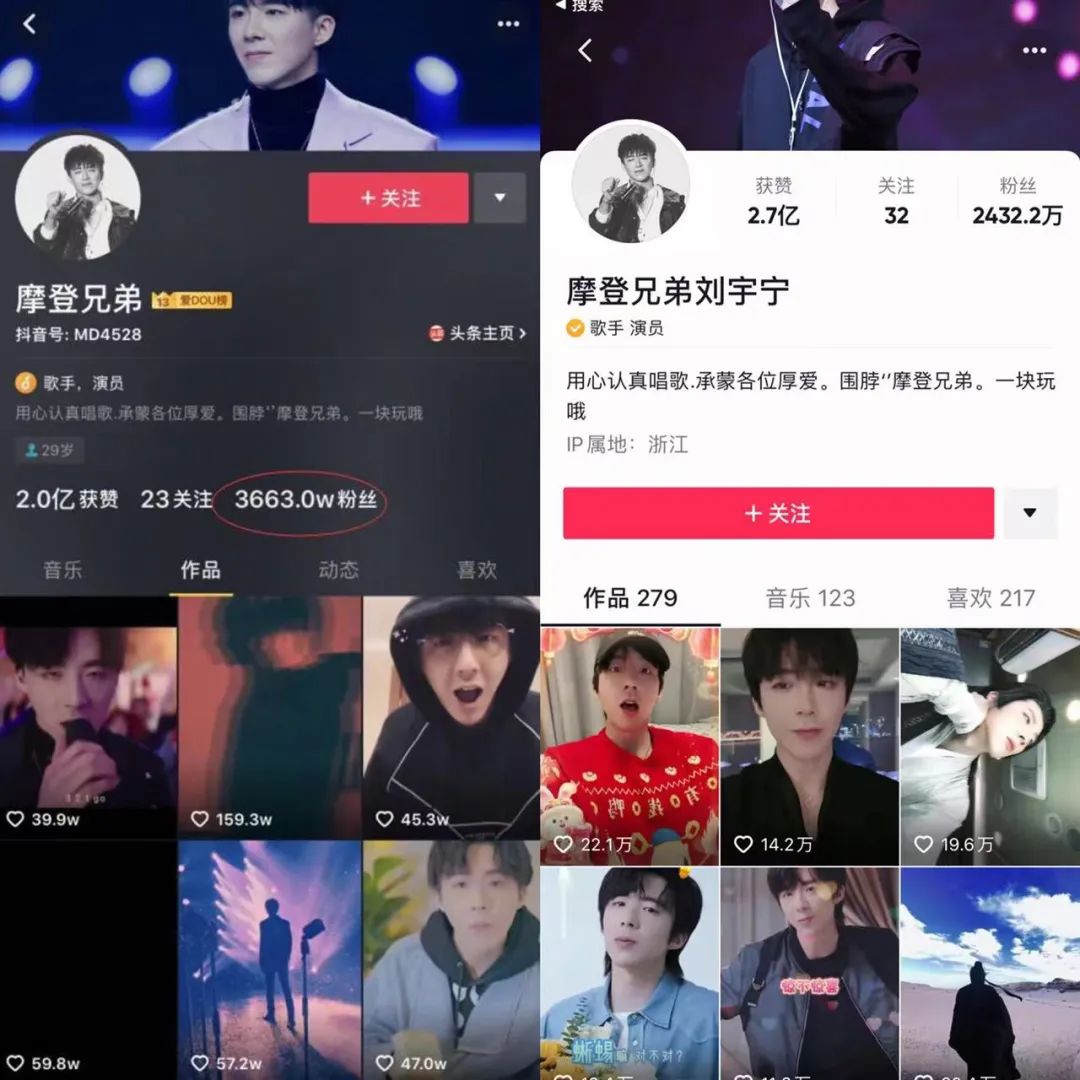 费启鸣和刘宇宁的转型之路比较像,但费启鸣至今仍只能混迹于小体量青春剧。要说他们之间的区别,可能就是刘宇宁相对比较勤奋,始终坚持高频率直播,维护运营最初的直播粉。