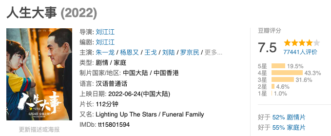 但在读娱君看来,《人生大事》总归是一部很有意义的国产电影,因为这是一部直面死亡话题的商业片。