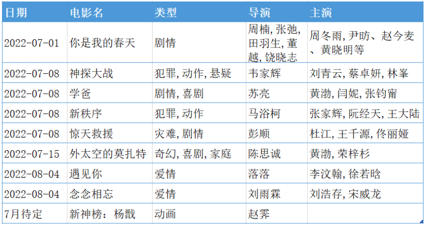 而在《人生大事》之后,关注度较高、有成为票房主力希望的暑期档电影主要有以下几部: