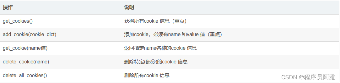 5、Selenium操作cookie 的方法