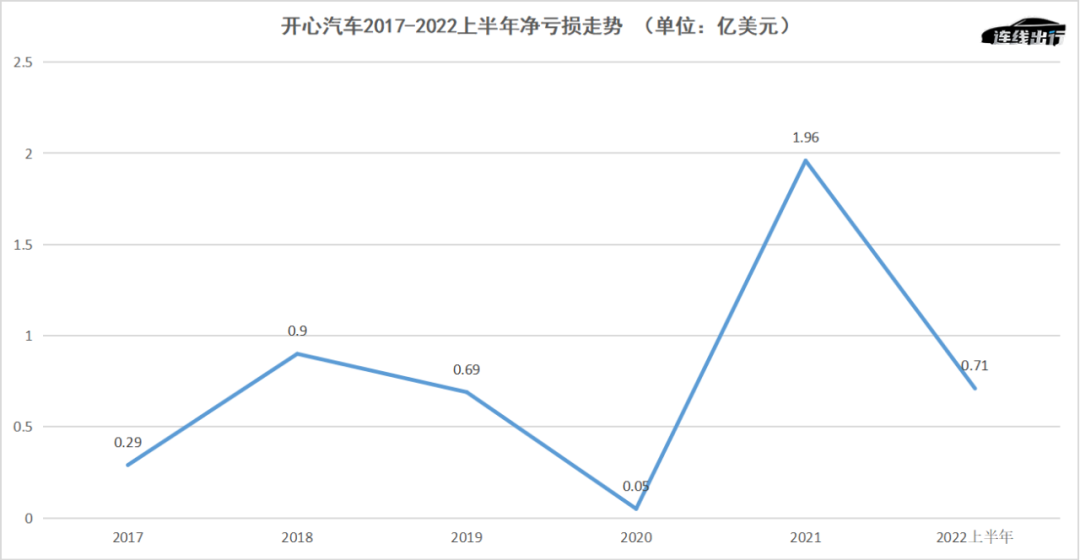 而到了今年上半年,净亏润依然达到了0.71亿美元。这也意味着,开心汽车这五年中已经累计亏损了4.6亿美元(折合约为32亿人民币)。