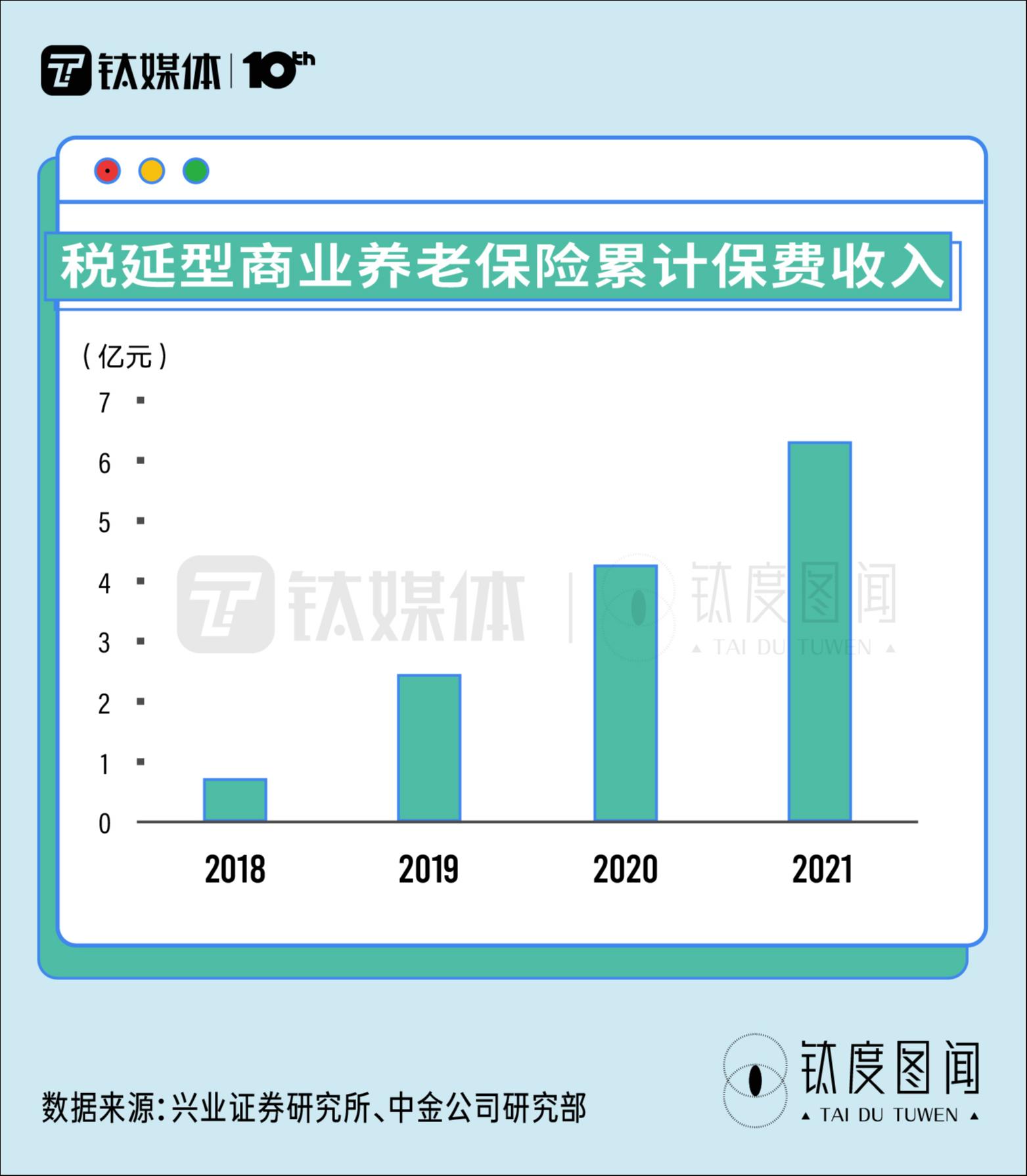 2018年,中国开始试点个税递延型商业养老保险,因税收优惠幅度较小,截至2021年,累计保费收入仅6.29亿元,参保人数仅5万人左右,未达预期,且相当一部分为保险公司内部员工自购。