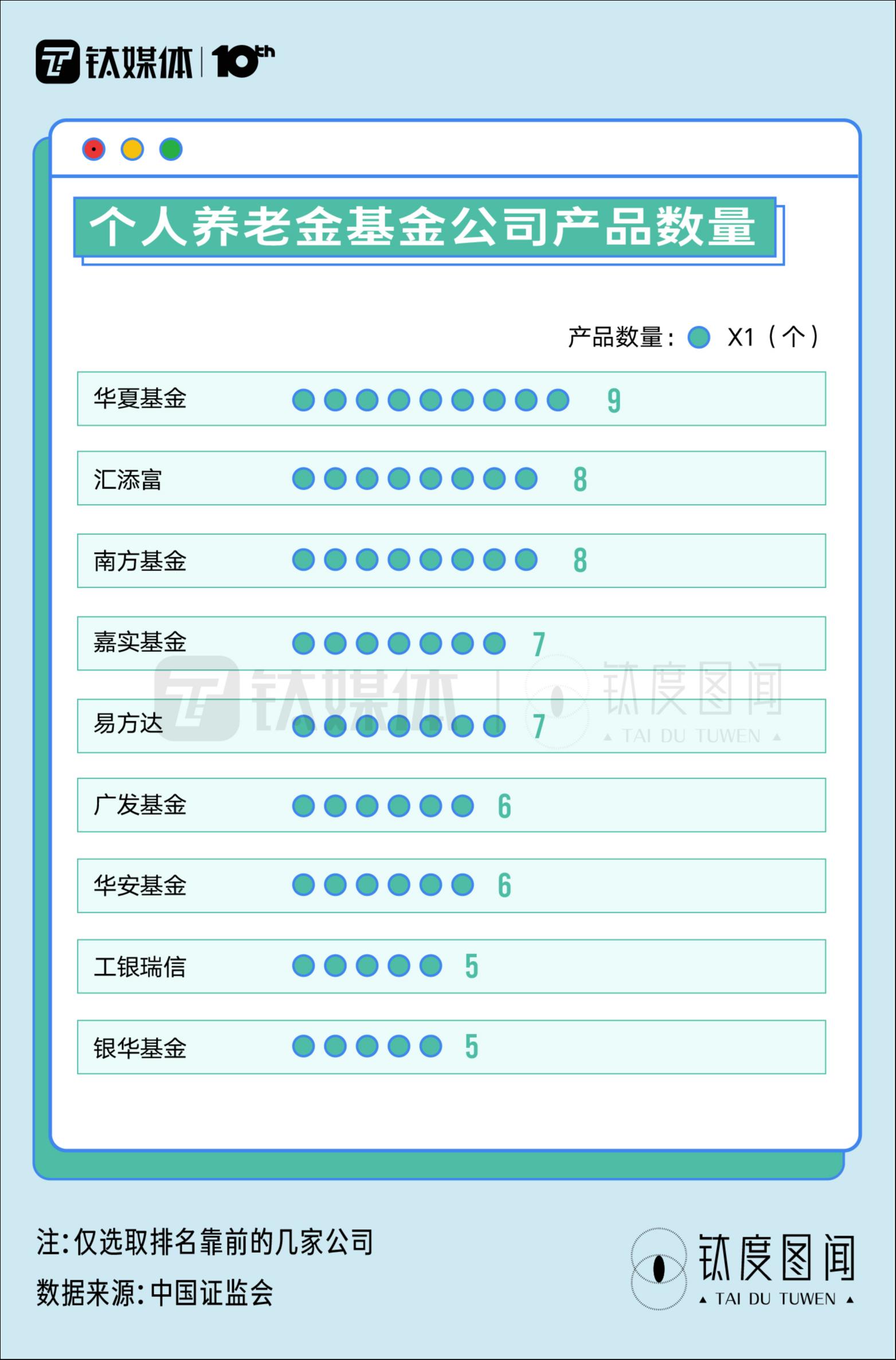 其中,华夏基金共有9只产品被纳入,在全市场可比的公募基金公司中,数量行业第一;此外,汇添富、南方旗下8只养老FOF产品纳入个人养老金投资基金产品名录,易方达基金、广发基金分别有7只、6只产品在列,工银瑞信和银华基金也有5只产品在列。