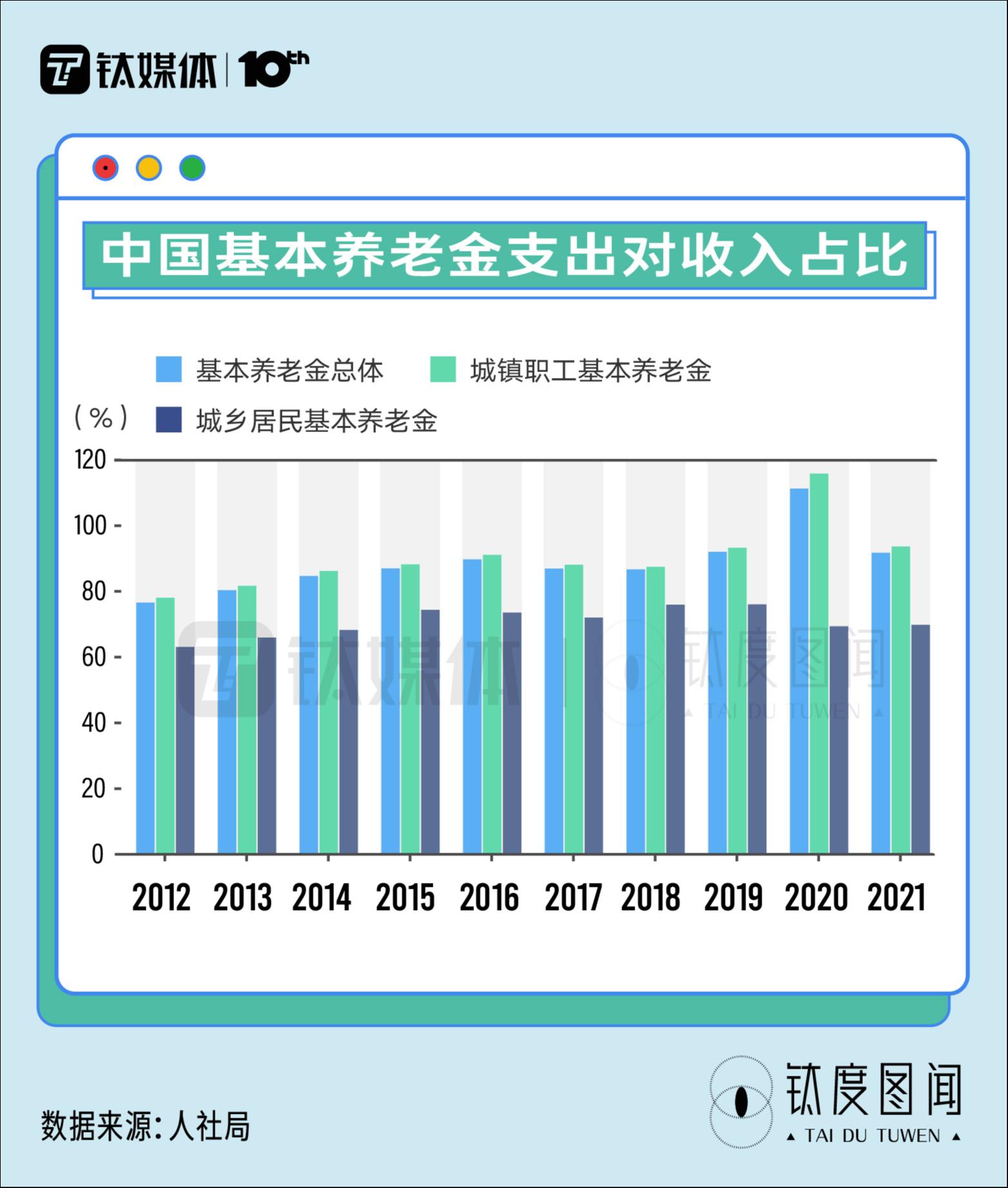 当前中国的养老金体系中,以基本养老保险和社会保障基金为代表的养老金第一支柱占主导地位。但随着中国养老压力不断增加,基本养老保险的收支压力逐年扩大,基本养老金支出对收入占比从2012年的76.56%上升到2021年的91.49%。其中,基本养老保险在2020年出现缺口,首次出现收不抵支的情况,支出/收入达111.02%,其中城镇职工基本养老保险支出/收入达115.61%。根据社科院《中国养老金精算报告2019-2050》预测,全国城镇职工基本养老保险当期结余或将于2028年出现赤字并不断扩大,中国第一支柱养老金负担较重。