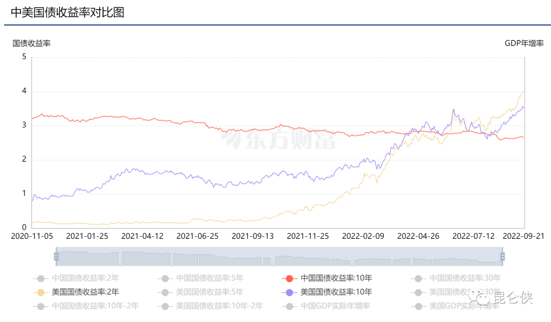 本次美联储再次加息75个基点后,对政策最敏感的2年期美国国债上涨15个基点,至4.113%,飙升至2007年以来的最高水平。与此同时,基准10年期美国国债收益率升至3.64%的高位,为2011年2月以来的最高水平。