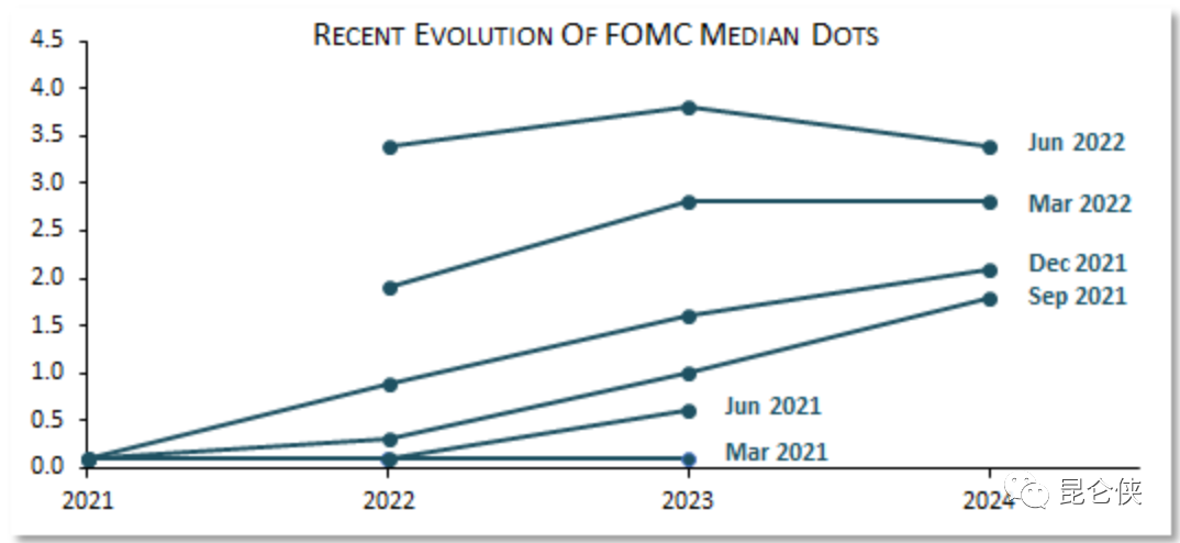 当然,美联储的利率点阵图毕竟只是预测,大部分时间都不“靠谱”——官员们自去年以来的历次季度议息会议,就不断上调着点阵图预期。就和券商分析师每季度都在上调和下调目标股价一样,哈哈。