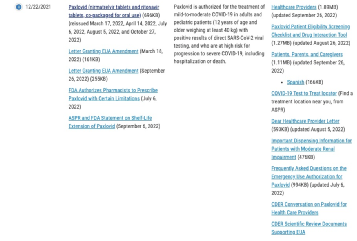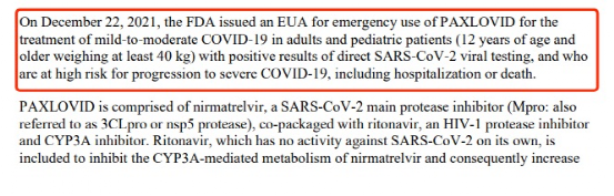 (图为美国食品药品管理局网站中Paxlovid有关信息)