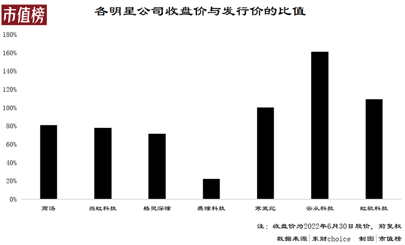 当前,商汤、当虹科技、格灵深瞳、AI医疗赛道的鹰瞳科技都已经破发,寒武纪破发过,现在处于破发的边缘。