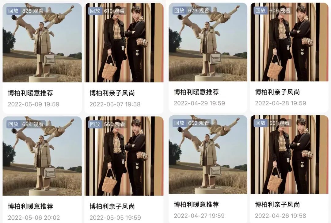 比如Burberry就用了一种颇为“省劲”的玩法:在淘宝平台上滚动播放之前多期直播内容,形成了一种品牌已经在常态化直播之感。这些直播也没有设置秒杀、低价抢购、打折促销等环节,保持了高格调做品牌宣传的同时,也做到了对产品的推荐。