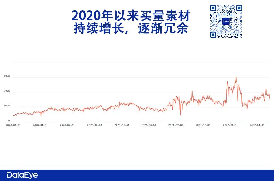这说明,今年抖音上新素材量快速膨胀,创意吸量效率进一步下跌。