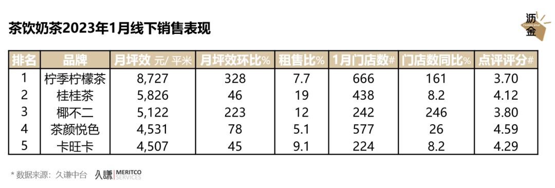 其中茉酸奶坪效居高不下,势头迅猛,满米酸奶坪效的同比、环比均增长。