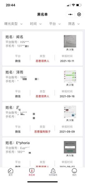 有些平台设置了黑名单,挂出了一些隐藏在屏幕背后、冒充领养人的“狗肉党”“繁殖党”,警告别有居心者。