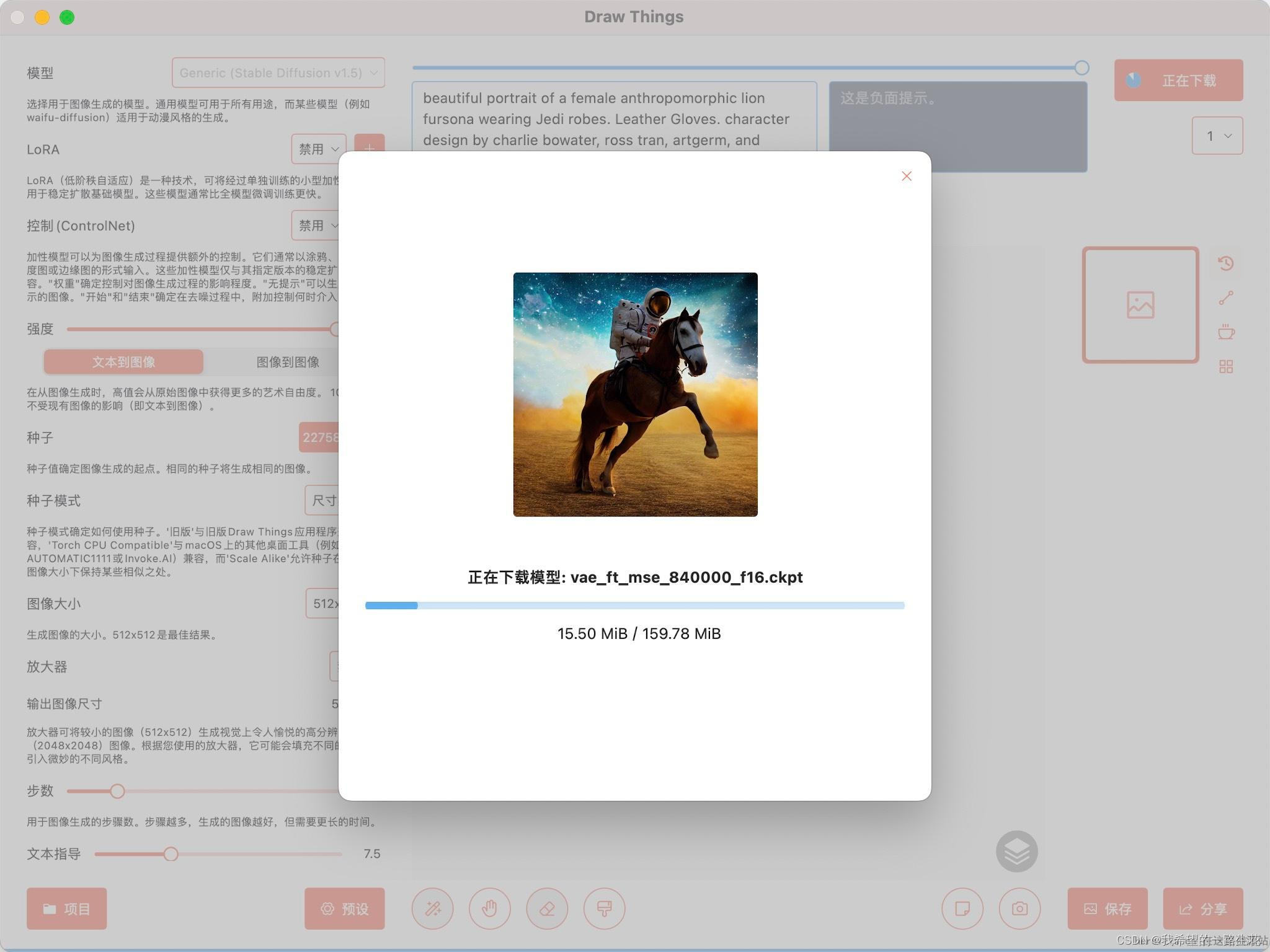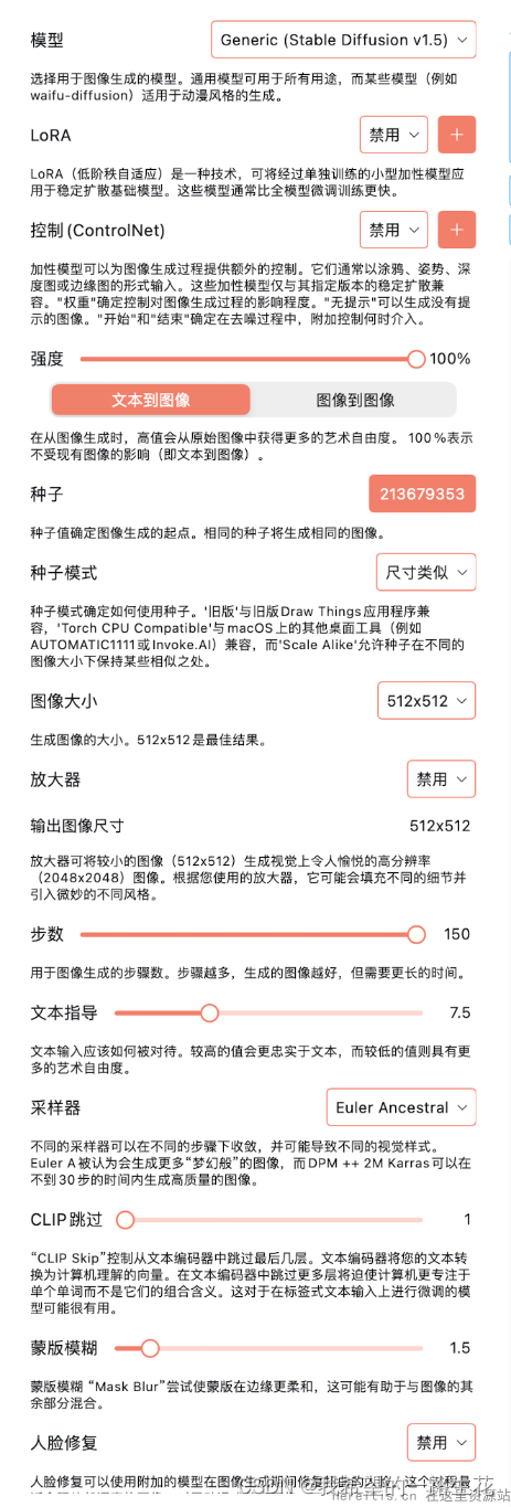该软件相对于 Stable Diffusion 来说上手特别容易,不需要繁杂的配置,另外 DrawThings 也可以像 Stable Diffusion 一样来导入一些自定义的模型进行图生成
