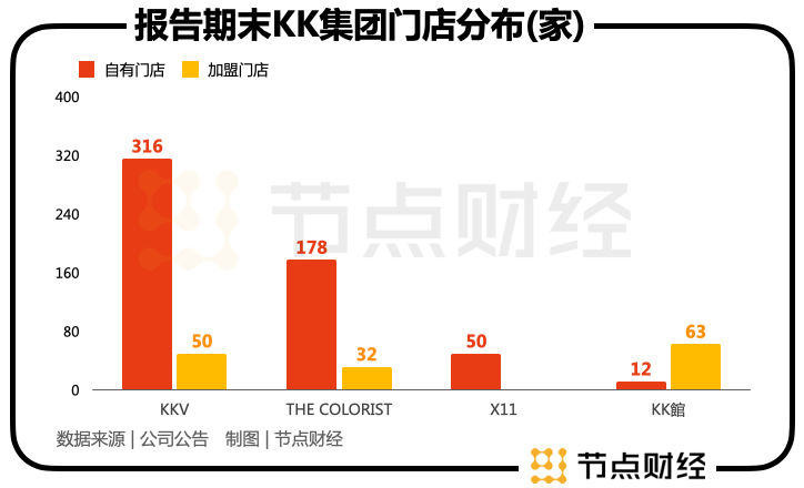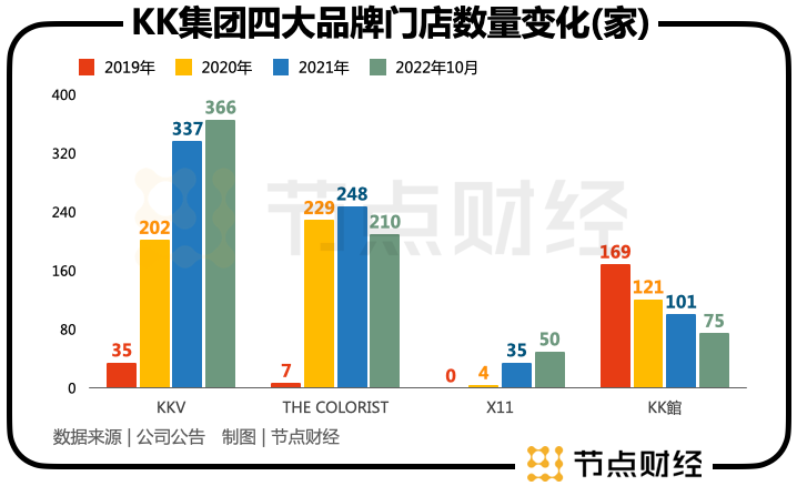 除了未能从经营活动中赚到钱之外,去年前十个月KK集团旗下的四大潮流消费品牌还在开店速度上明显放缓。