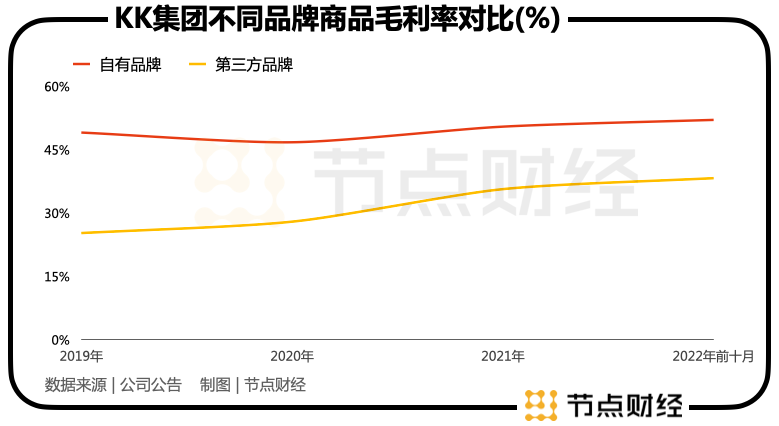可惜之处是,KK集团的自有品牌商品收入占比过低,招股书数据显示2019年-2021年及2022年前十个月,公司自有品牌商品销售额占总销售额的比例分别为7.7%、12.3%、12.5%及10.3%。