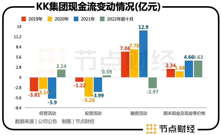 截至2022年10月末,KK集团包括现金及现金及现金等价物(4.63亿元)与受限银行存款合计有7.07亿元。