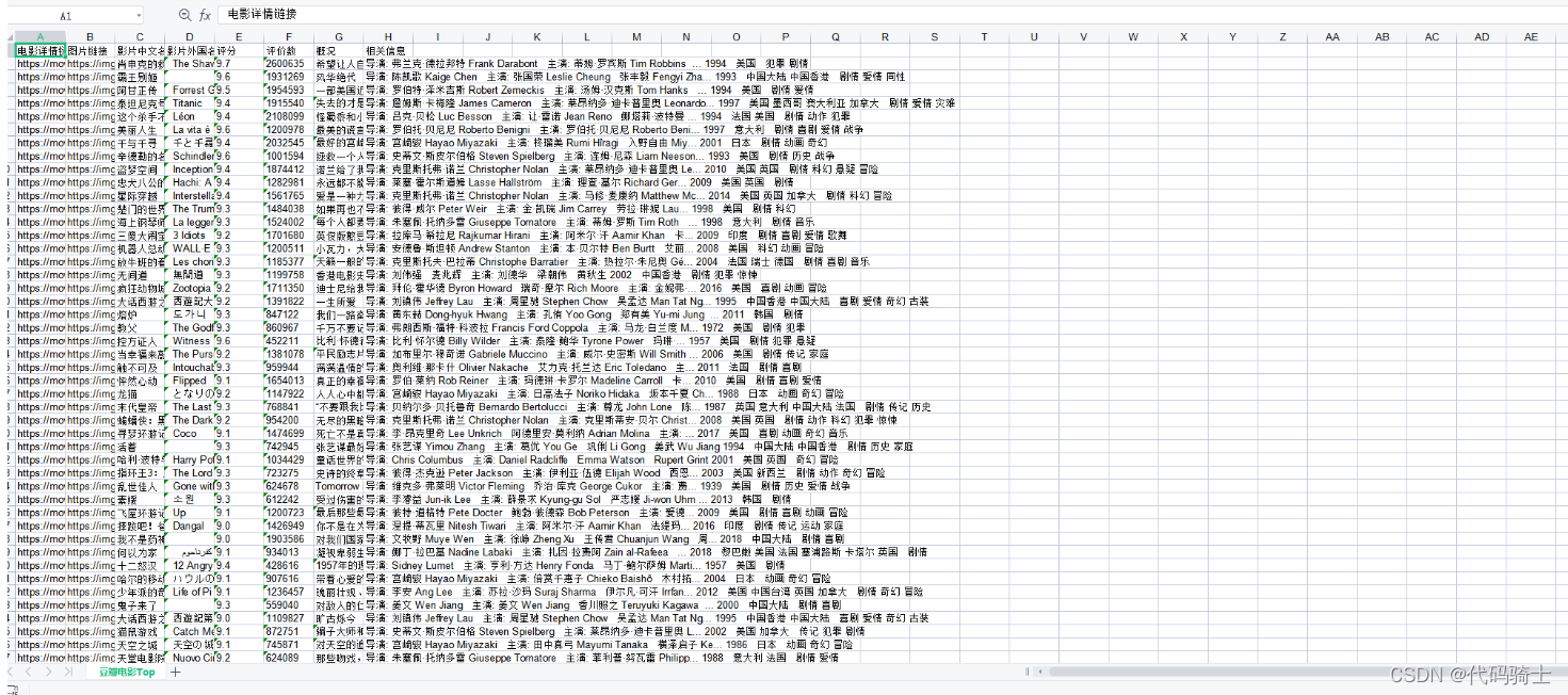 col=("电影详情链接","图片链接","影片中文名","影片外国名","评分","评价数","概况","相关信息")