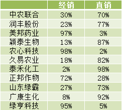 美邦药业、农心科技和绿亨科技仅有制剂产品的企业,在经营方式上依旧采取较为传统的模式,厂家-经销商-零售商-消费者,并且占比均高达95%以上。正邦作物是唯一一家拥有原药制造和制剂生产能力的企业,选择经销模式。多数农药企业的选择是由经销转向直销,降低经销模式占比,减少中间环节,保证产品的价格更具竞争力和产品质量。但是,相对来说需要额外增加人工成本。