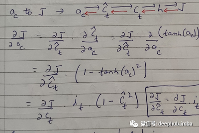 dJ/dh_t * dh_t/dC_t * dC_t/dc_t可以写成dJ/dc_t(我们在上面有这个值)。