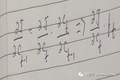 可以将dJ/dh_t * dh_t/dC_t写入为dJ/dC_t(我们在单元格状态中有这个值)。所以我们只需要对C_t w.r求导。t f_t。