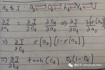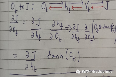 dJ/dV_t * dV_t/dh_t * dh_t/dO_t可以写成dJ/dO_t(我们从上面的o_t得到这个值)。