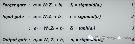 Z_t:如下图所示,Z_t进入四个不同的路径,a_f,a_i,a_o,a_c。