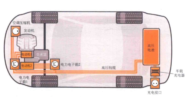 从动力配合的原理图中,可以看出两种车表面上都是发动机和电池的配合,但在设计思路上是大相径庭的。