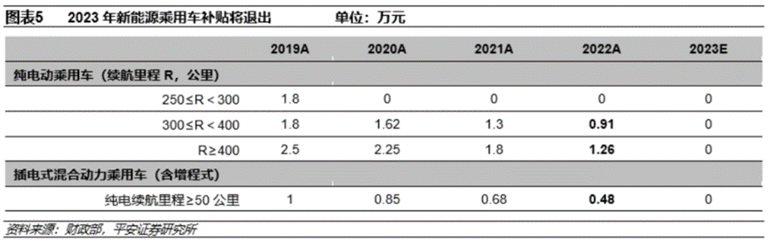 2023年,新能源汽车补贴政策正式退出。纯电车型退坡幅度为1.26万元,插电式混动车(包含增程车)退坡幅度相对温和,仅为0.48万元。混动车退坡幅度较小,因此成本相对可控,对利润层面的挤压也相对有限。