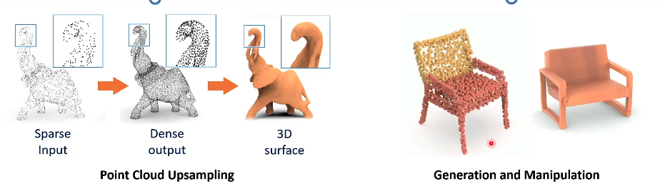 由于采集成本高、遮挡等问题,点云无法连续采集物体表面的信息,而更加容易表征空间定位信息。点云3D重建在自动驾驶、机器人等空间定位和扫描场景应用更多,并不太适合用于视觉表现。要生成更加稠密包括适合视觉观测的3D内容的表面,需要生成更加稠密的点来补充离散点云的稀疏问题。这其中也有些研究者利用深度学习的方法,通过特征扩展、GAN扩展网络等方式生成更加稠密的点云信息。