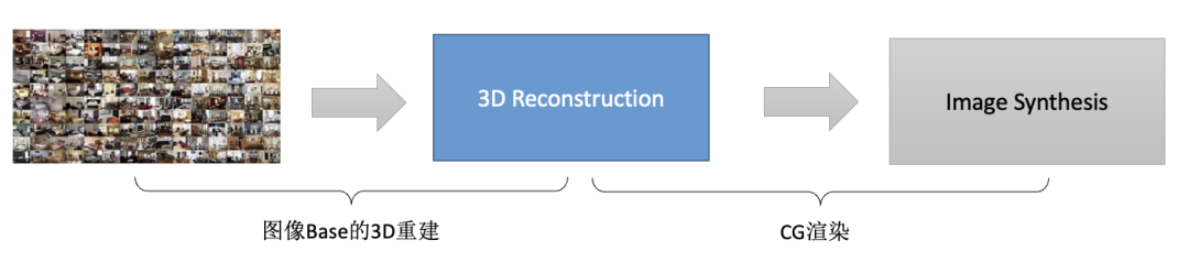 目前AIGC研究的重点方向,是通过若干2D图片以计算机视觉算法重建方式来生成更多的3D内容。基于图片的3D内容生成可以理解为下面的流程,通过现有2D图片(输入)进行3D几何、材质等重建,再结合光照渲染能力重新恢复2D高清的多维度图片。