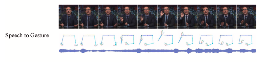 近年来,随着动捕技术发展、视频内容数据的丰富,动作数据的积累也变得更加简单。大量围绕动作驱动的AI工作也陆续被大家提出。2019年以后大量的工作基于RNN网络进行动作预测(Motion Prediction)、基于 RL(Reinforcement Learning,增强学习)的动作控制算法(Motion Control)和Ginosar、Alexanderson等人提出的基于语音、文本甚至音乐的多模态动作驱动的CNN模型(Cross-modal motion synthesis)。